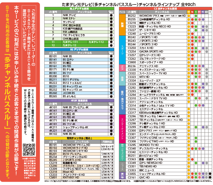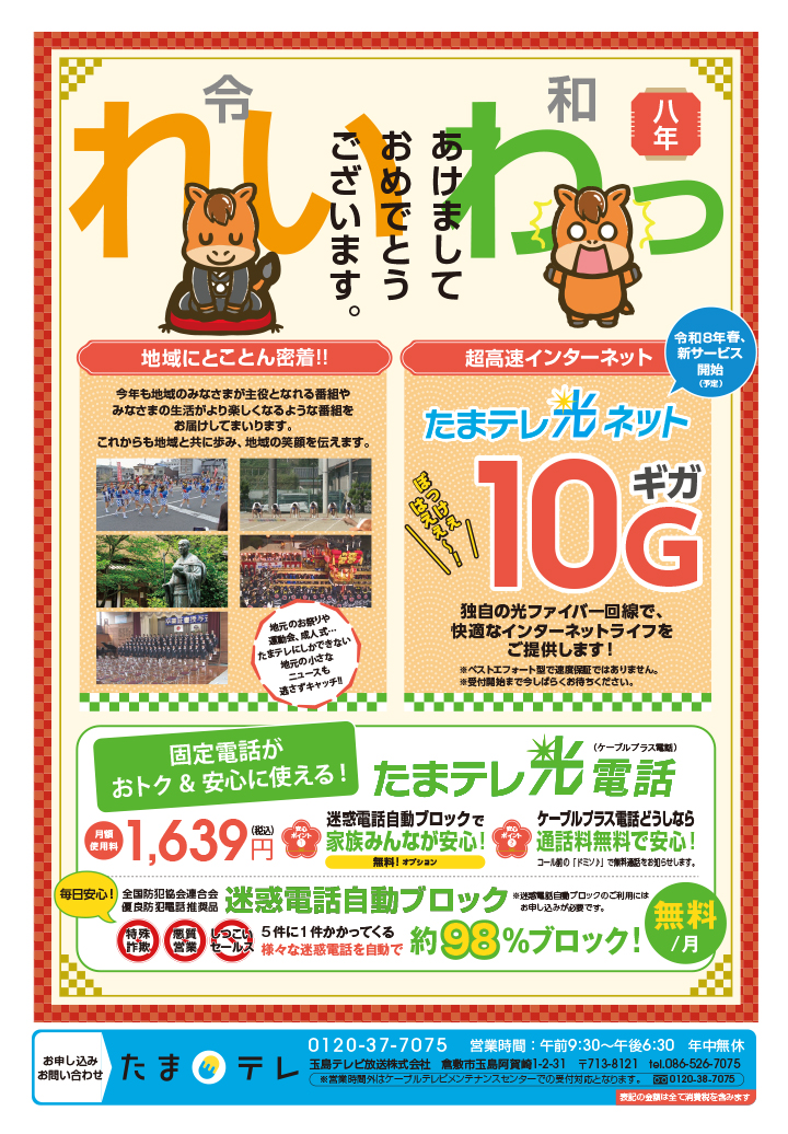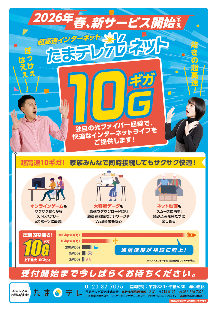 今後ともサービスの品質向上に努めて参りますので、引き続き玉島テレビ放送をよろしくお願い申し上げます。