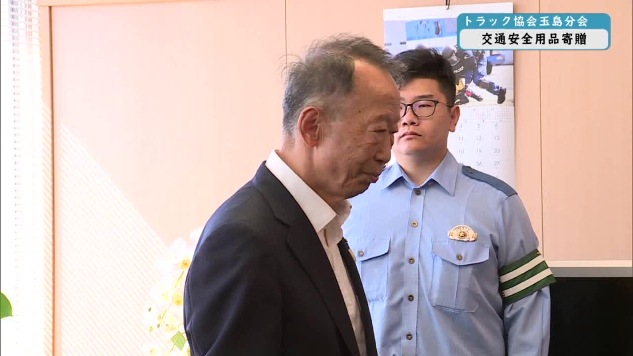 岡山県トラック協会玉島分会 玉島交通安全協会に交通安全用品寄贈