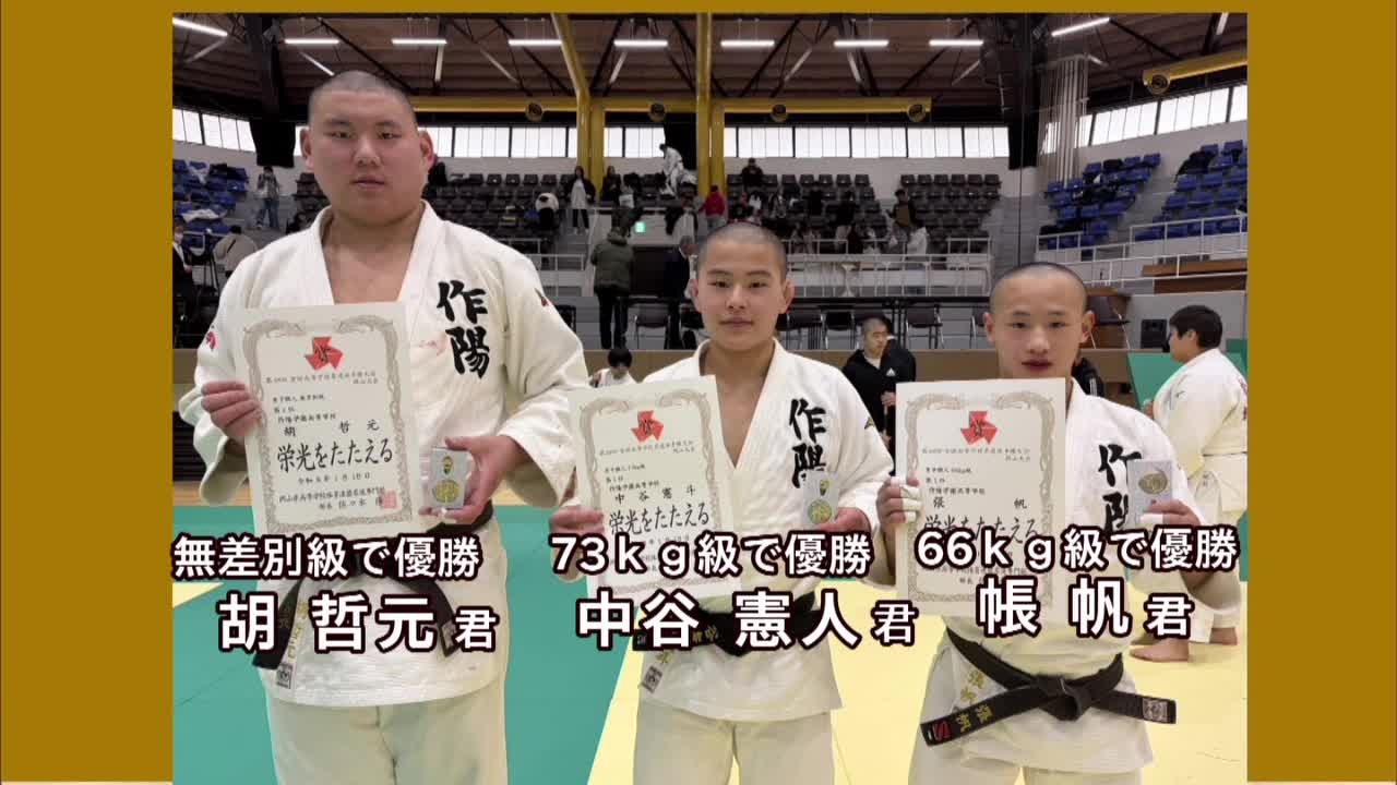 全国高校柔道選手権大会岡山大会個人戦 作陽3階級優勝