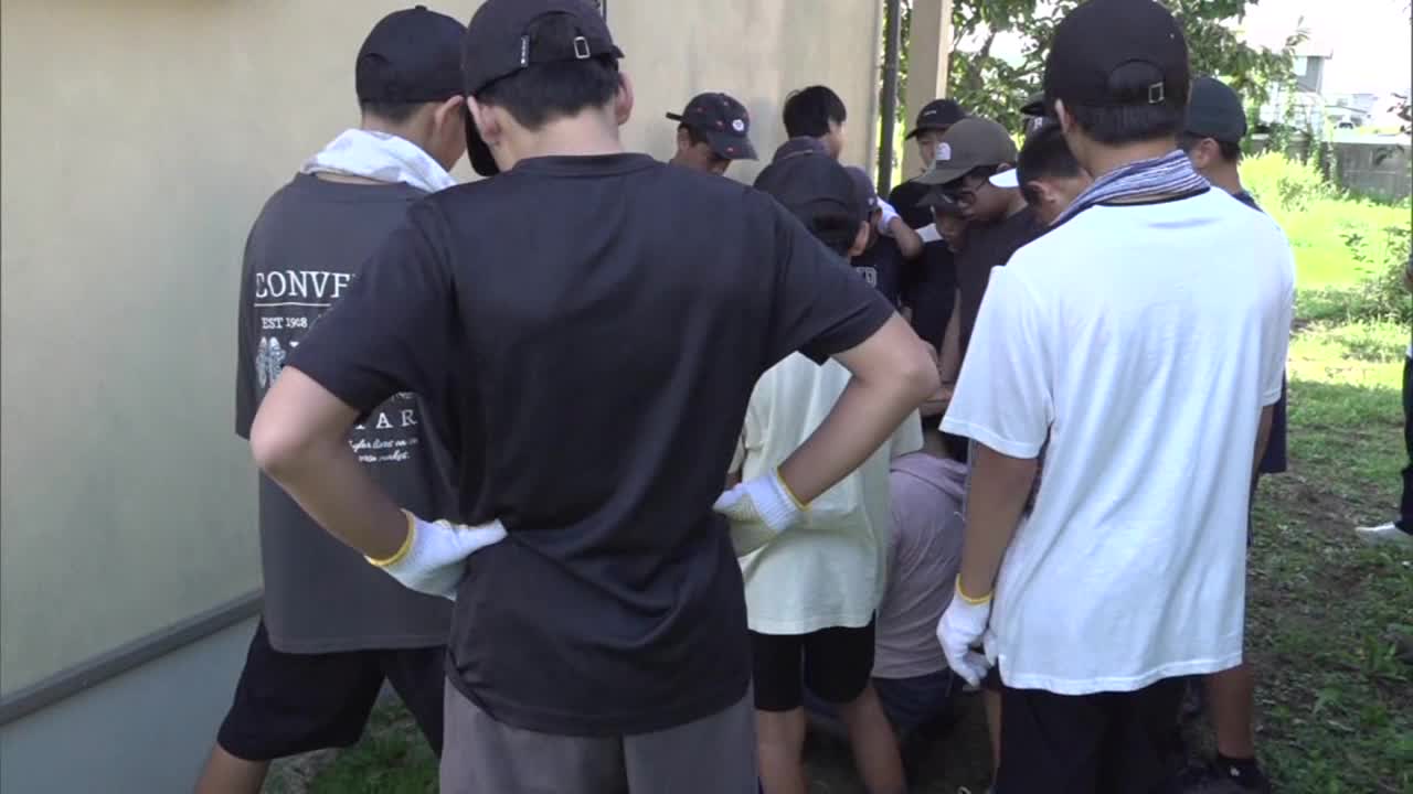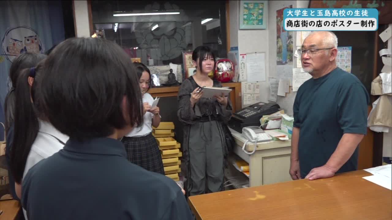大学生と玉島高校の生徒 商店街の店舗ポスターを制作